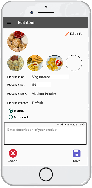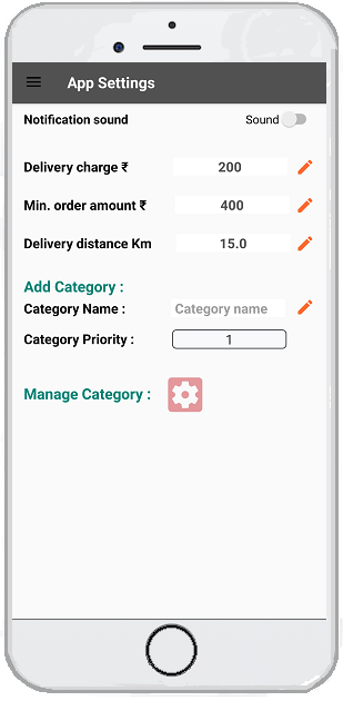 Businesses can provide promotional offers or discounts through the App. Delivery charge, delivery distance and other business parameters can be updated through the App.